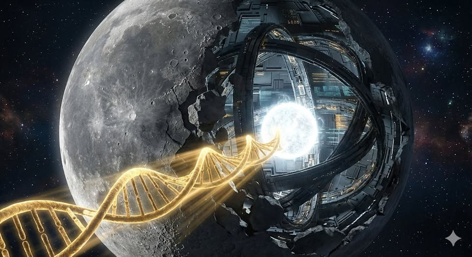 To nie jest “naturalny satelita”. To pusta w środku stacja bojowa/procesor, zaparkowana na orbicie w idealnej odległości, by idealnie zasłaniać Słońce (zaćmienie). Matematyczne prawdopodobieństwo takiego “przypadku” wynosi ZERO.